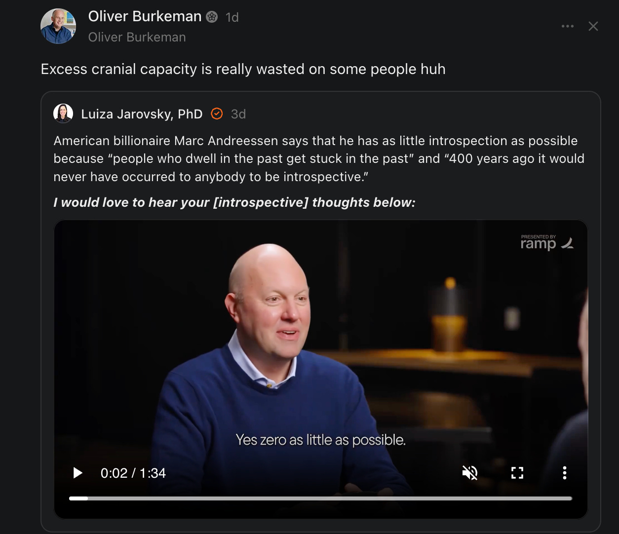 “The Best Founders Have Zero Introspection.” Marc Andreessen’s words came out of a thought-provoking interview with David Senra of the Founders Podcast, discussing the mental quirks and habits of the very best entrepreneurs, according to Marc’s own experience working and partnering with those very entrepreneurs at a16z.
