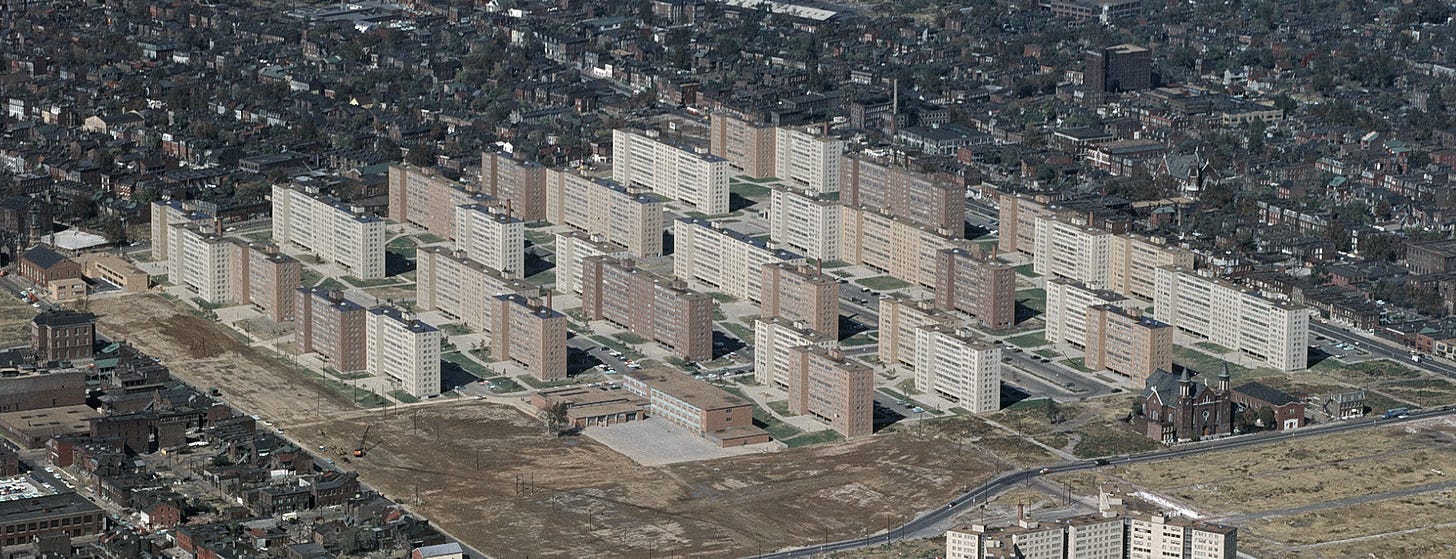Take, for example, the Pruitt-Igoe in St. Louis— a 33 eleven-story towers complex.