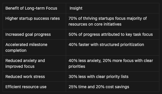 Well-researched principles help with long-term prioritization: delaying gratification, clarifying end goals, asserting boundaries, regular vision reviews, optimal resource allocation.